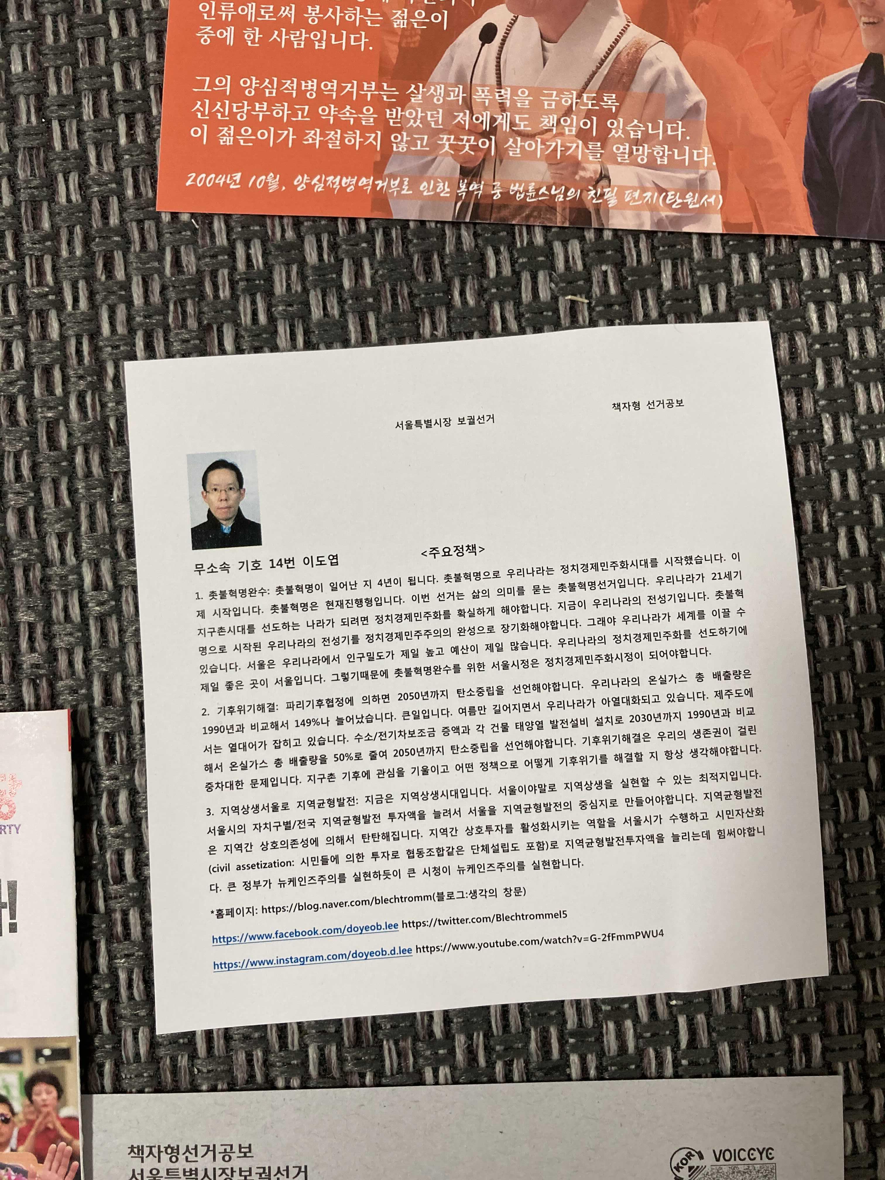 맨 위의 인물과 우측 하단 인물은 동일 인인가? 후보가 성소수자 인걸까? 를 제외한 궁금증은 별로 들지 않았다.