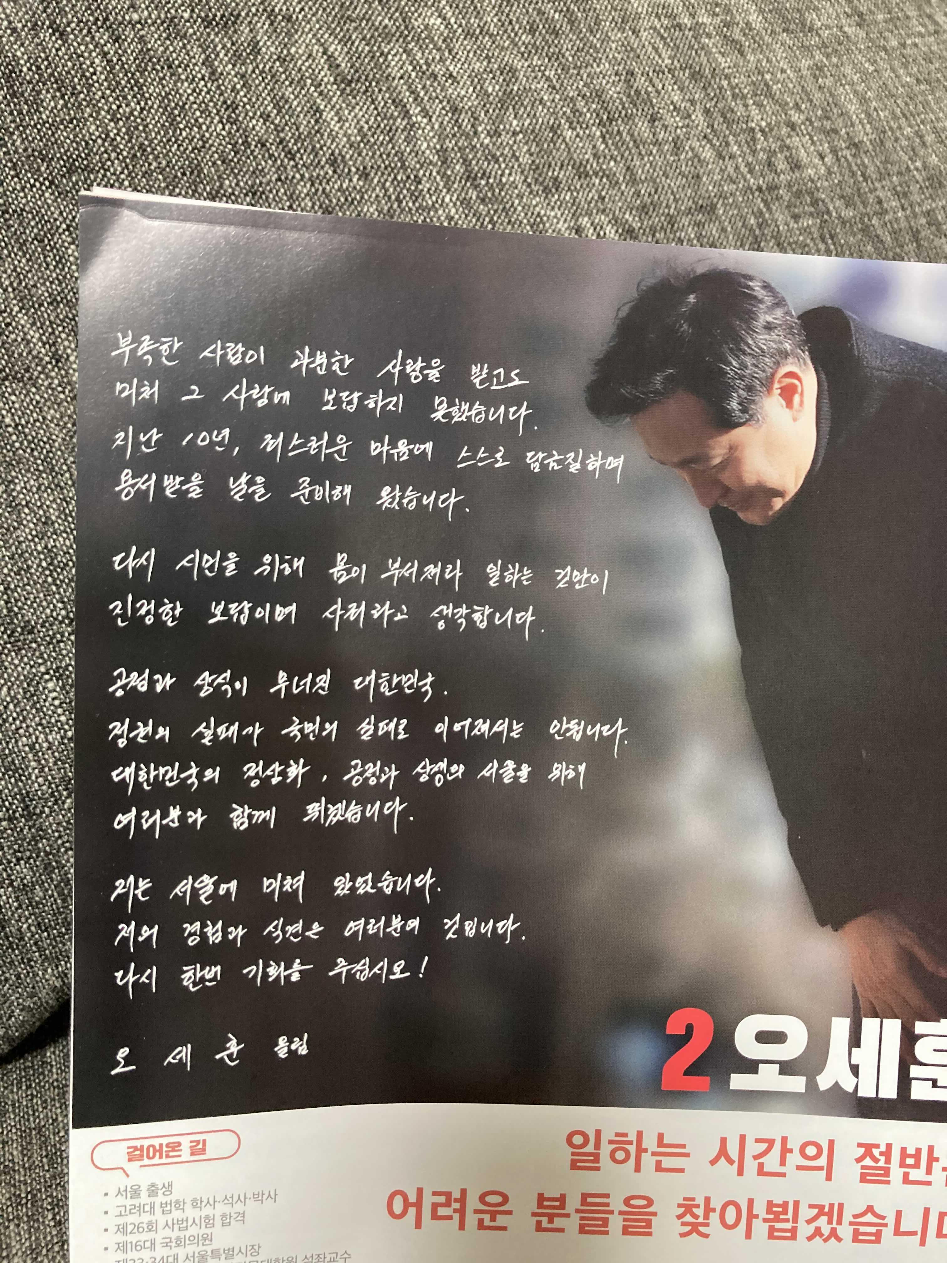 이 사진은 그정도로 나쁘진 않지만 오세훈이라는 미남의 원판을 생각해보았을때 좀 별로인듯