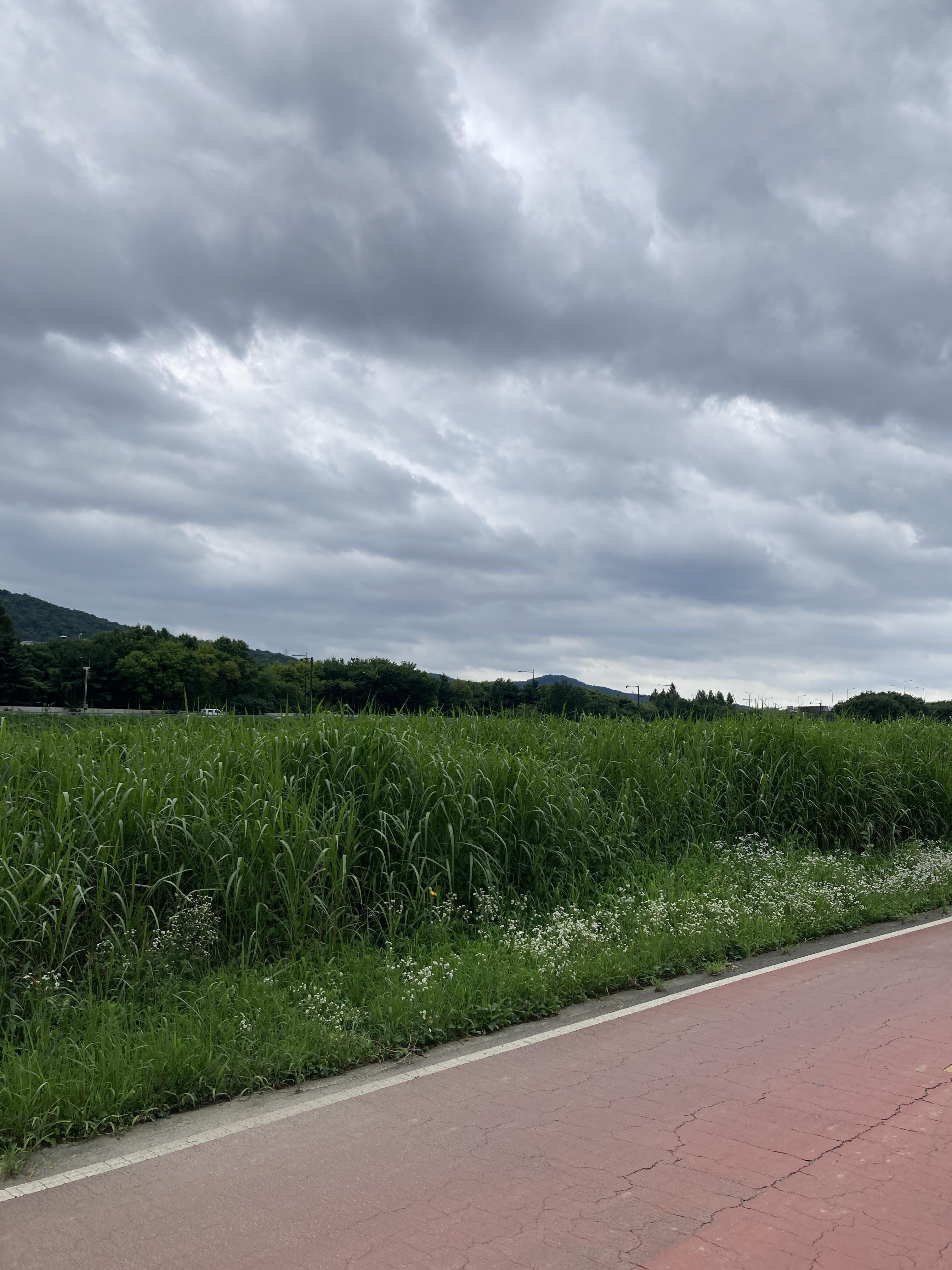 흐린 날엔 식물의 녹색이 더 선명해진다. 자전거를 탈 때 몸에 닿는 미지근한 바람도 기분이 좋고