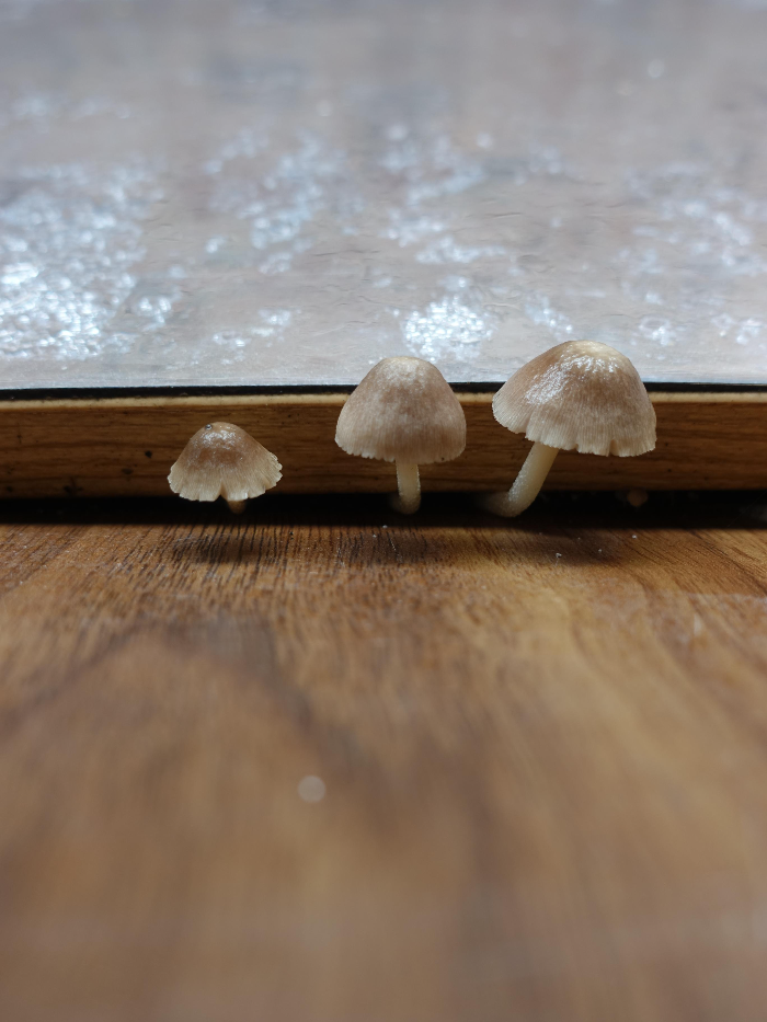 환기하려고 안방 창문을 열었더니 고양이 평상에 버섯이 나 있었음 눈물버섯? 몰라..