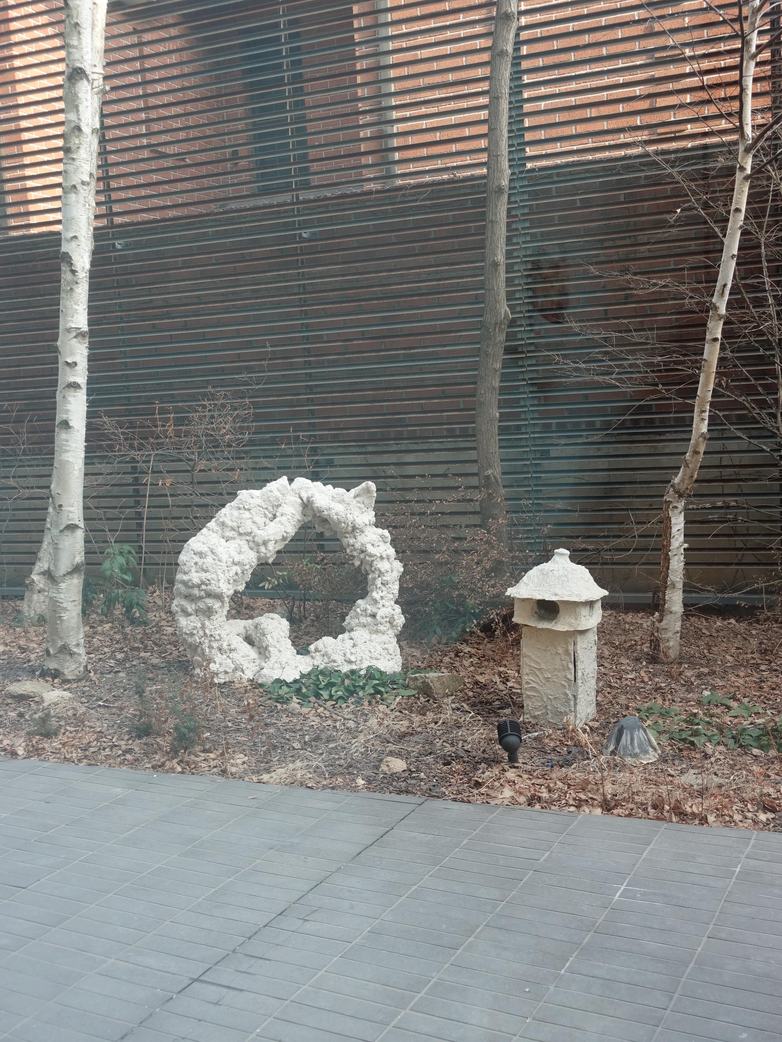 흔히 있는 정원의 석조들인가 싶지만 잘보면 종이죽(?)같은 재료