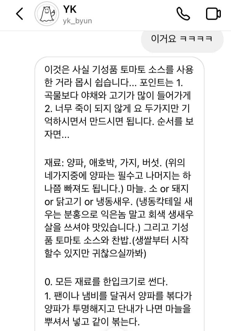 음식에 대한 영감을 주는 yk_byun님 인스타에서 보고 레시피 여쭤봄